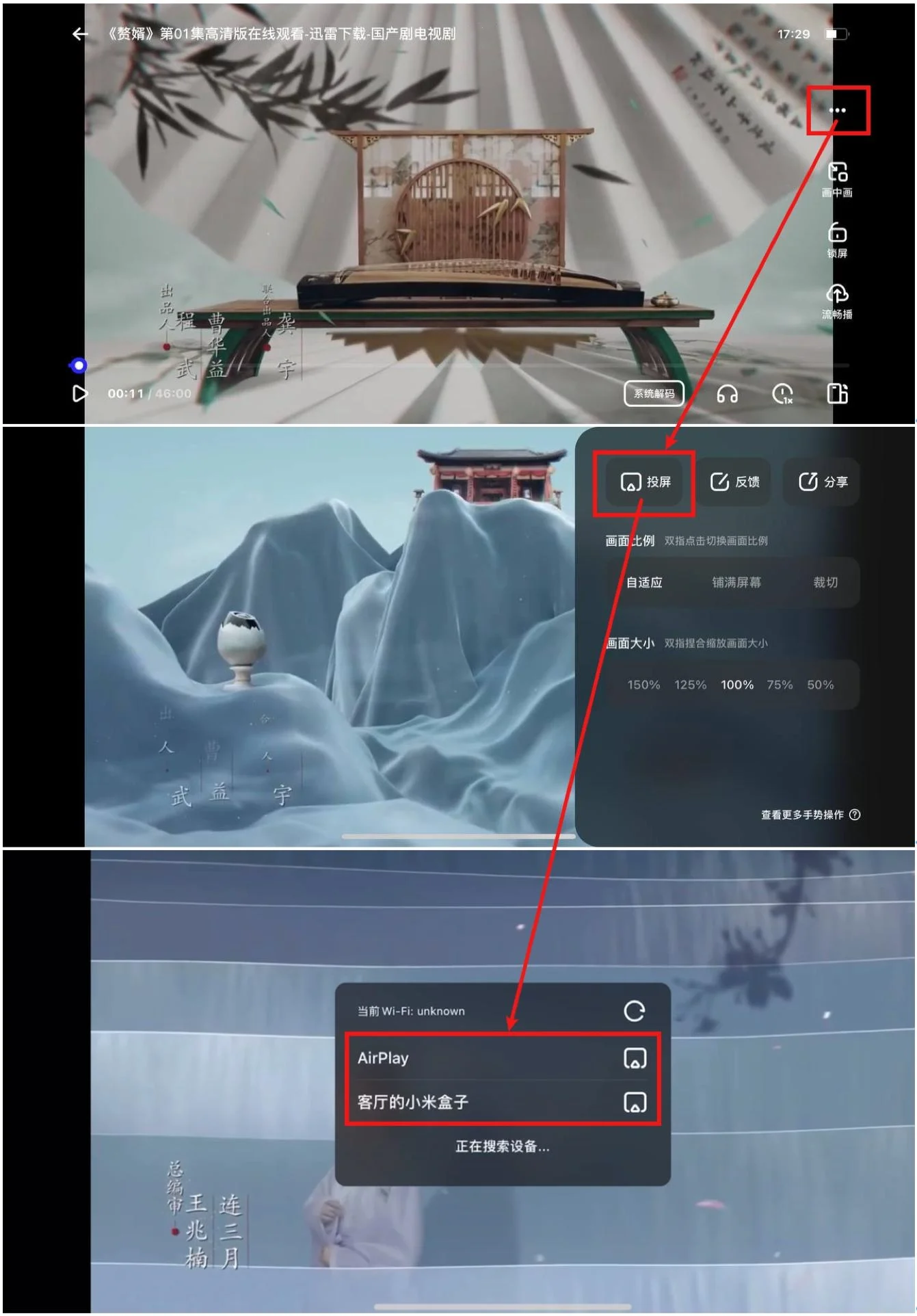 • 投屏成功后,建议直接锁屏,不要打开其他软件;